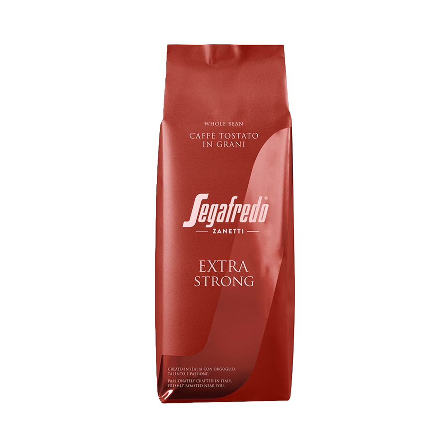 Segafredo Extra Strong ist eine ausgewogene Mischung aus Arabica- und Robusta-Bohnen für einen cremigen Kaffee mit vollem und ausgewogenem Körper, der durch einen angenehmen Abgang und eine leichte Würze gekennzeichnet ist. Durch den Arabica-Robusta-Blend hat er eine dichte, stabile haselnussbraune Crema und zeichnet sich durch eine geringe Säure aus.